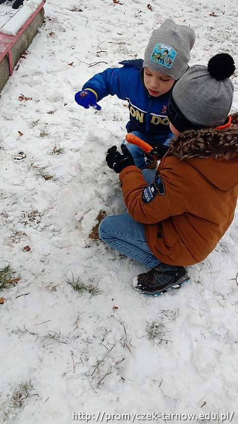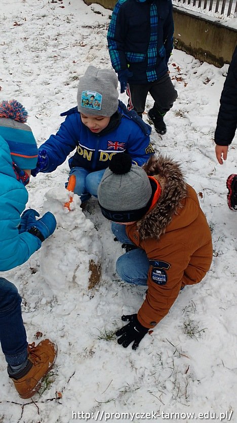 Spadł wreszcie upragniony śnieg. Dzieci czekały na niego z niecierpliwością, gdyż pani Ula obiecała, że gdy tylko pojawi się biały puch, pójdą razem lepić bałwana.