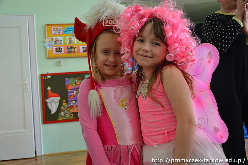 Promyczki uczestniczyły z ochotą we wspólnych zabawach prowadzonych przez grupę K & G. Tańców i śmiechu było mnóstwo, o czym świadczą roześmiane buzie na zdjęciach. Następny bal karnawałowy już za rok!