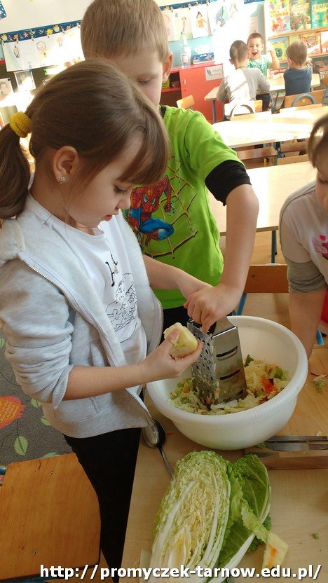 Zuchy ochoczo zabrały się do pracy i już po chwili z przygotowanych składników powstał smakołyk, który zjadły nawet największe niejadki! Dzieci prosiły o przepis i obiecały, że taką surówkę zrobią z rodzicami w domu.