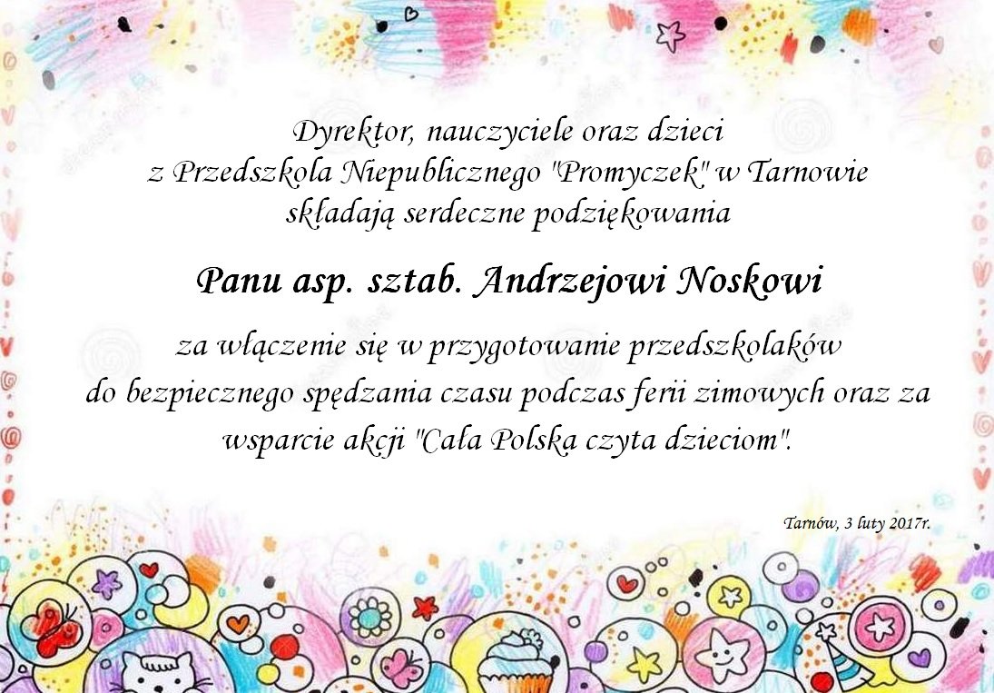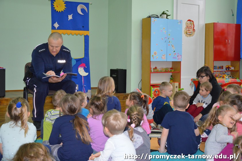 Dużą niespodzianką dla dzieci był fakt, że asp. sztab. Andrzej Nosek włączył się w kampanię "Cała Polska czyta dzieciom" i przeczytał naszym milusińskim historię o krasnalu Radusiu, który zapomniał, co to znaczy bezpieczna jazda na łyżwach.