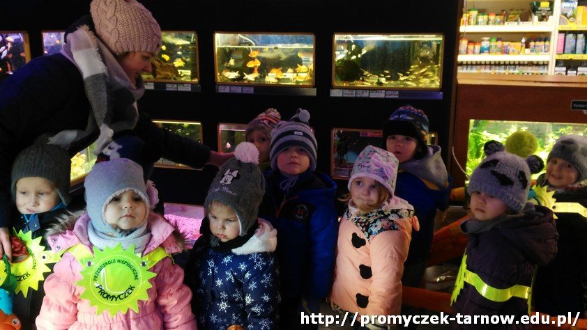 Począwszy od spacerów po Zespole Szkół Ekonomiczno-Gastrnimicznych w budynku którego mieści się nasze przedszkole po odwiedziny w sklepie zoologicznym celem zakupu rybki do akwarium. Teraz mały, pomarańczowy przyjaciel jest obiektem zainteresowań przedszkolaków, których pierwszorzędnym pragnieniem jest karmienie rybki.