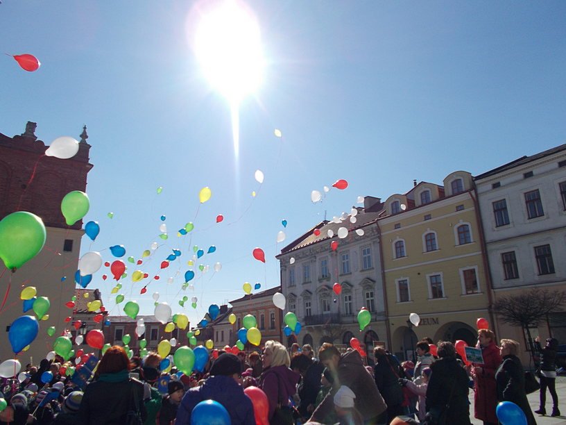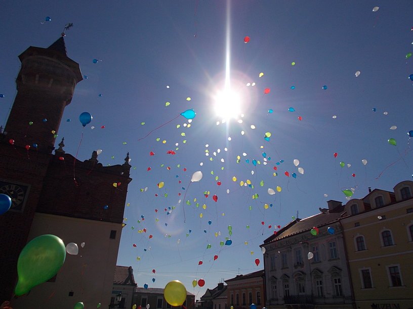 Uroczystość Słodkich Urodzin Tarnowa rozpoczął pochód z Zaułku Łokietka na Rynek. Korowód prowadzili król Łokietek oraz hetman Tarnowski. Na rynku czekała nas wielka niespodzianka – polonez w wykonaniu dzieci, wspaniały tort, a także mnóstwo balonów, których puszczanie do nieba sprawiło wszystkim ogromną frajdę. Za rok też tam będziemy!