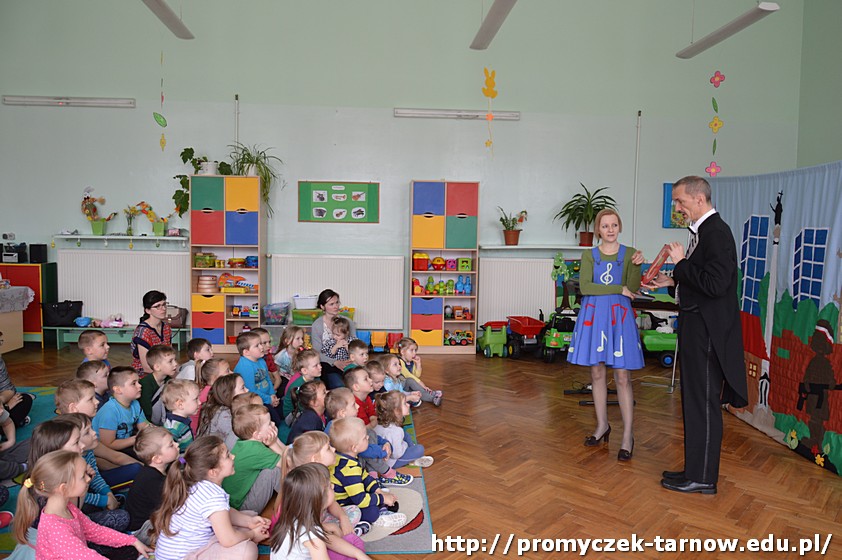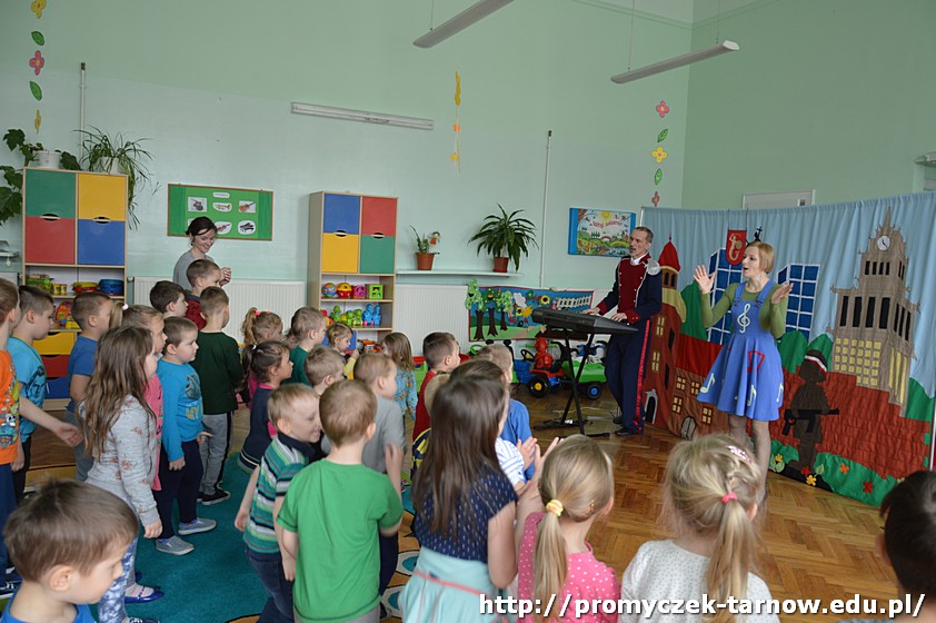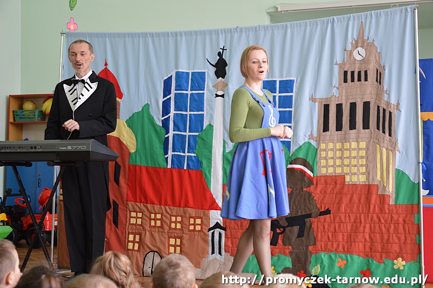 Przedszkolaki przeniosły się do Warszawy - poznały legendę o Warsie i Sawie, wysłuchały kilku bardzo ciekawych piosenek, które porywały do tańca, a także przypomniały sobie, jak wyglądają nasze symbole narodowe. Wiolinka i Bemol zaprezentowali Promyczkom główne zabytki stolicy oraz nasz piękny narodowy taniec - polonez.