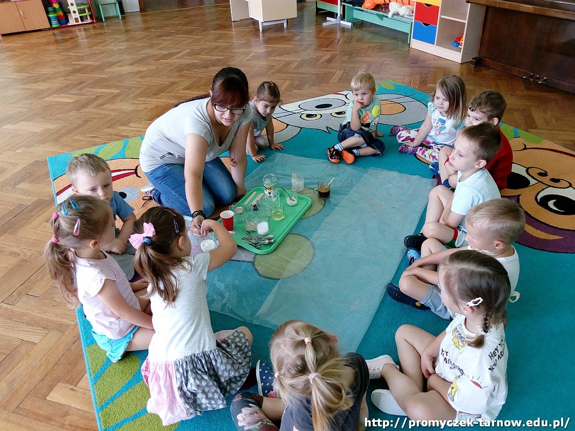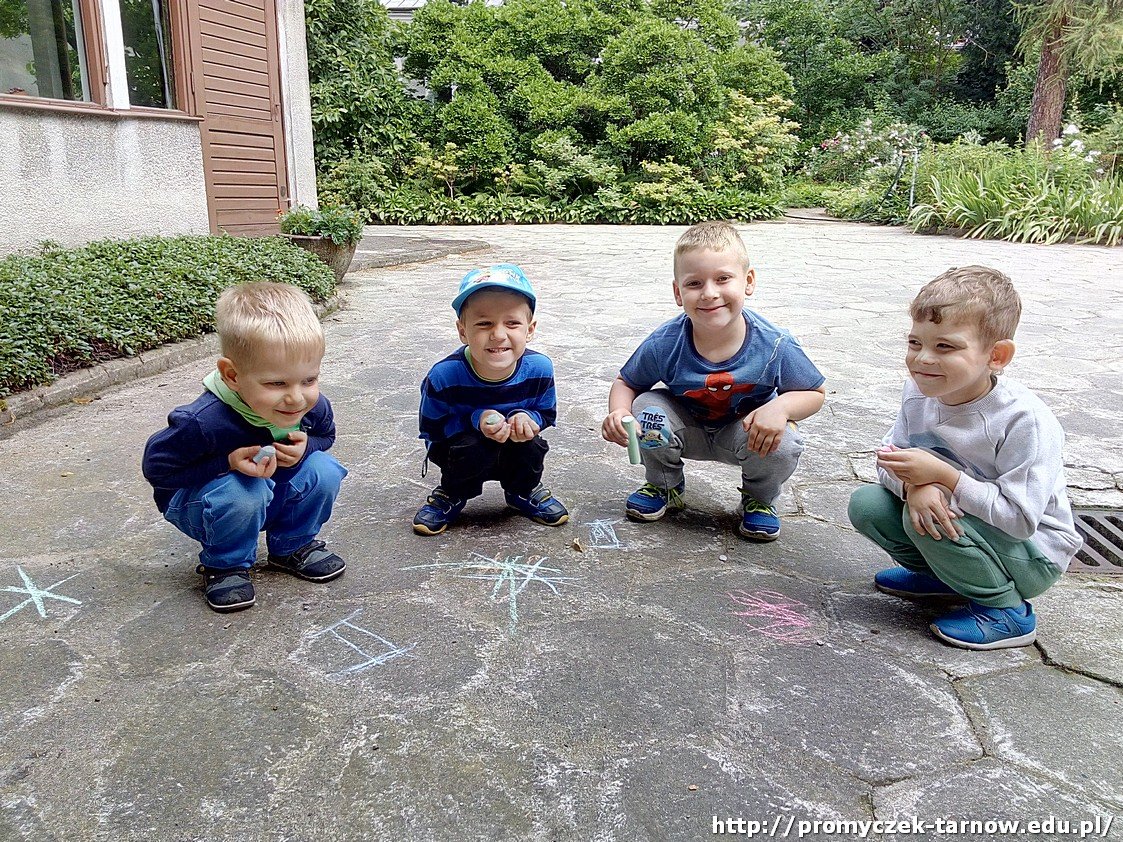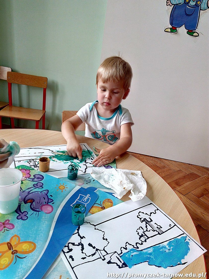 Wakacyjną porą pierwsza grupa Promyczka działa na pełnych obrotach. Dzieci spędzają czas na zabawie i eksperymentowaniu np. z wodą czy farbami, a jak tylko pozwala pogoda korzystają z placu zabaw ogrodu i spacerów po naszym urokliwym mieście. Nie mniej jednak wciąż utrwalane są zasady bezpiecznego spędzania wakacji oraz inne aspekty związane z okresem letnim.