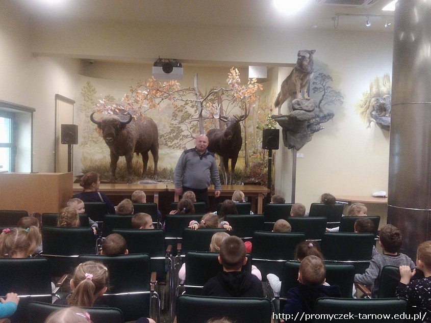 W muzeum dzieci zostały przywitane przez dwóch bardzo sympatycznych panów przewodników, którzy opowiadali niezwykłe historie na temat roślin i zwierząt żyjących na terenie Polski, a szczególnie w okolicach Tarnowa. Przedszkolaki mogły także zobaczyć zwierzęta w ich naturalnych rozmiarach np. borsuka, dzika, jelenia, żubra i niedźwiedzia., liczne ptaki i owady.