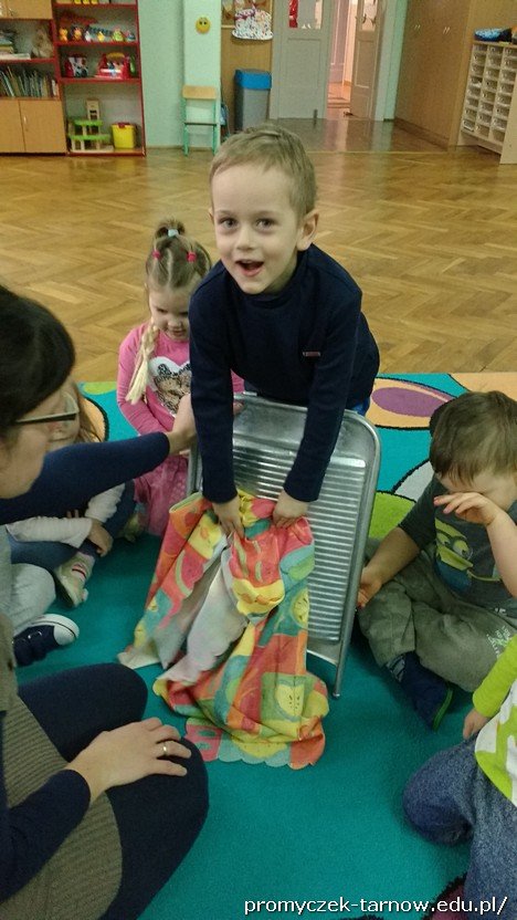 Od samego rana Smyki z uśmiechem na ustach myły ręce, a następnie jadły śniadanie. Po śniadaniu czas na zajęcia - tym razem o porządkach! Dzieci dowiedziały się jak w dawnych latach wyglądało pranie. Oj niełatwym zadaniem było dokładne wypranie na tarze, o czym dzieci same się przekonały.