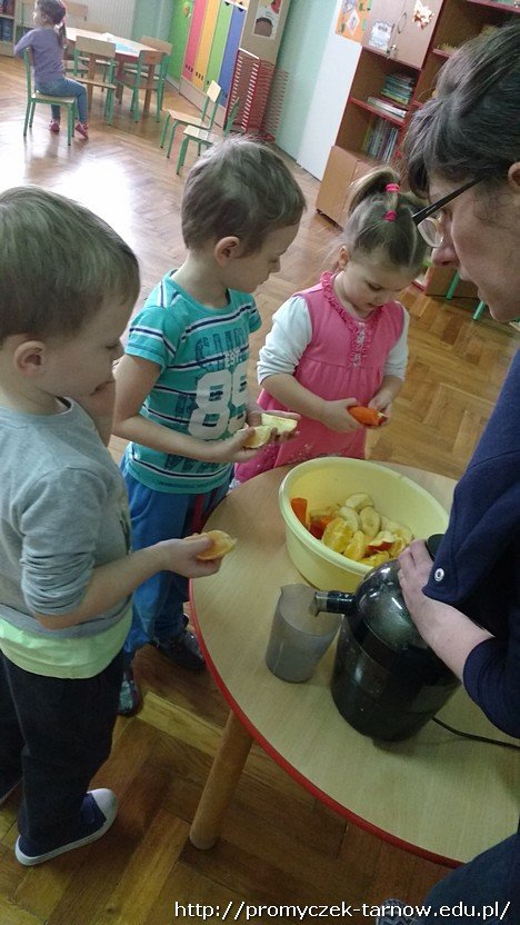 Skład Smyków w ostatnim czasie jest bardzo okrojony. Wynika to głównie z dużej zachorowalności. Aby nieco wzmocnić odporność dzieci panie wychowawczynie postawiły na witaminy i wspólnie z dziećmi przyrządziły pyszny sok.