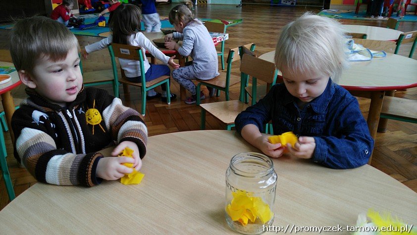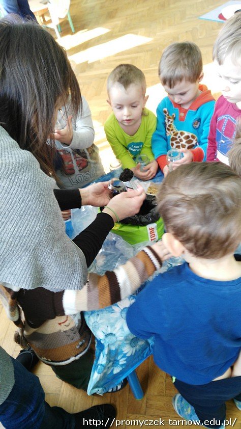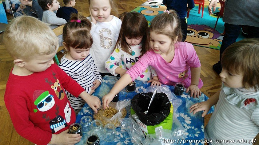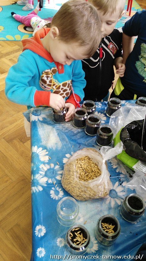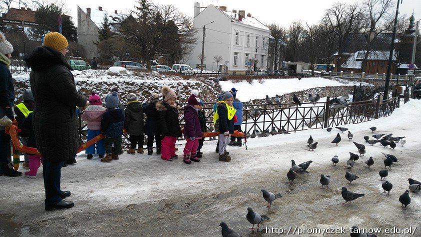 Natomiast cieplejsze już środowe przedpołudnie upłynęło pod znakiem poszukiwania oznak wiosny. W tym celu dzieci wraz z paniami wybrały się nad tarnowski Wątok. Dostrzeżono kaczki oraz gołębie, które chętnie pozowały do zdjęć wraz z dziećmi. Kolejno, w ogrodzie podziwiano piękno budzących się z zimowego snu roślin. Promyczki miały także w tym dniu okazję poczuć się jak ogrodnicy, siejąc do specjalnych słoiczków owies celem wzbogacenia kącika przyrody.