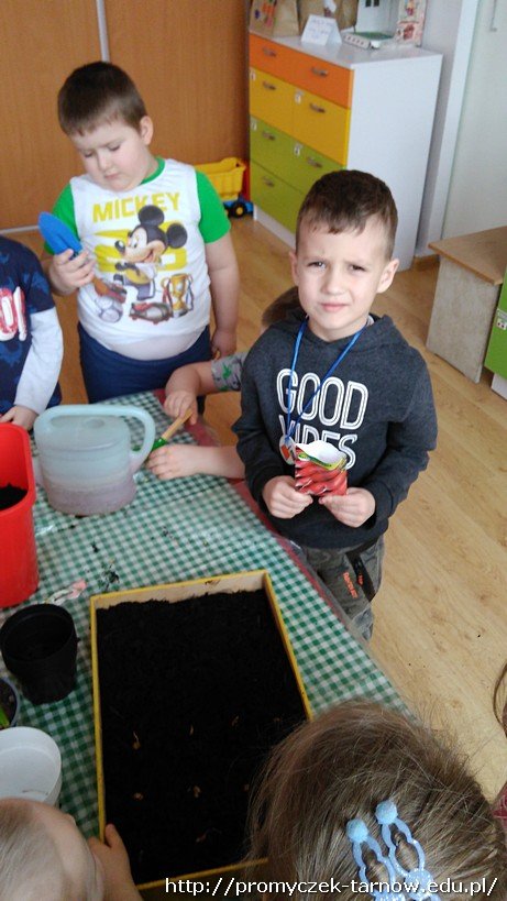 Wiosna w kalendarzu, a więc czas na wielkie sadzenie i sianie różnych roślinek w kącikach przyrodniczych. Dzieci z grupy Asy także bawiły się w małych ogrodników i wraz z Panią zadbały, aby ich kącik był zielony i pachnący. Samodzielnie zasiali owies, pszenicę, rzeżuchę i rzodkiewkę oraz zasadzili cebulkę i fasolę.