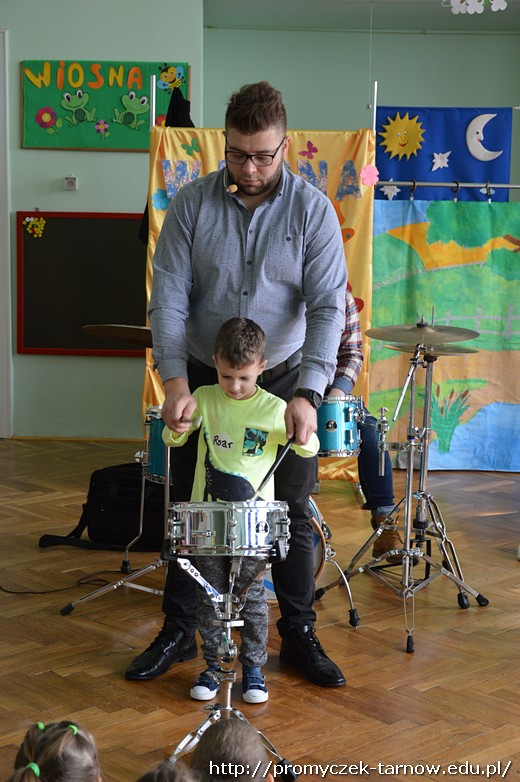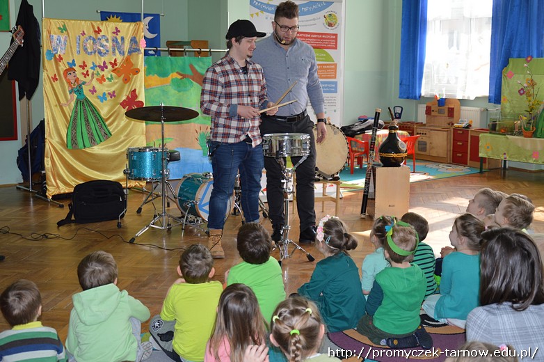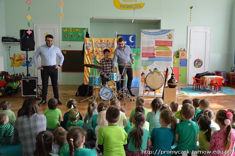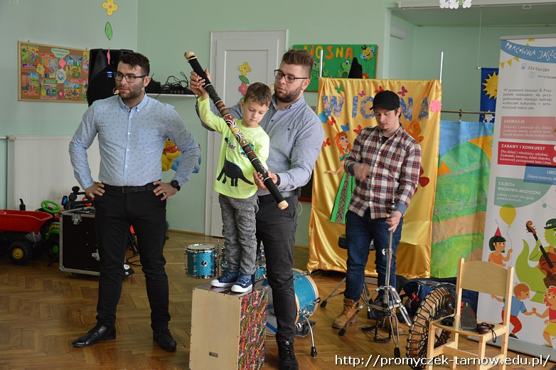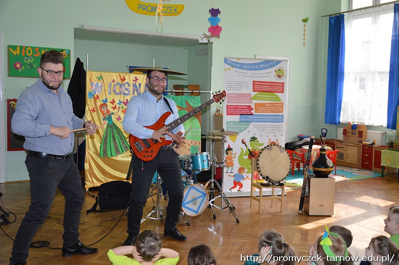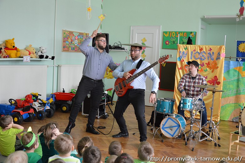 Drugiego dnia odbyło się uroczyste Powitanie Wiosny z udziałem zaprzyjaźnionego zespołu Jaszczur i Przyjaciele, podczas którego dzieci brały udział w zabawach ruchowych w rytm muzyki a także poznawały nowe instrumenty.