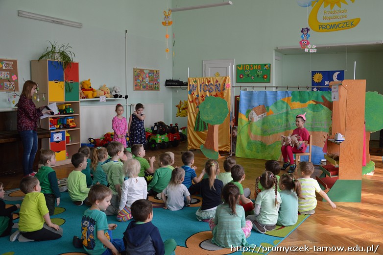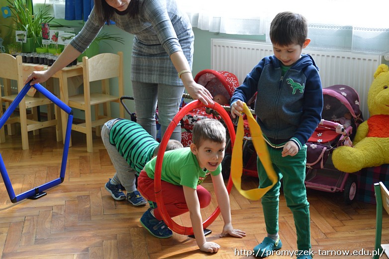 Następnie dzieci mogły pokonać tor przeszkód przygotowany na sali smyków, a na koniec zaprezentowały swoje przedstawienie przedszkolaki z trzeciej grupy- Zuchy, ukazując nabyte umiejętności podczas zajęć kółka teatralnego.