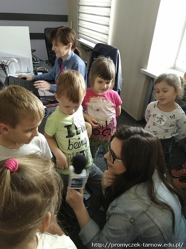 Dzieci miały okazję zobaczyć studio nagrań, proces obróbki dźwięku mogły porozmawiać z pracownikami, a także wzięły udział w nagraniu audycji dotyczącej planów na długi majowy weekend. Serdecznie dziękujemy za miłe spotkanie.