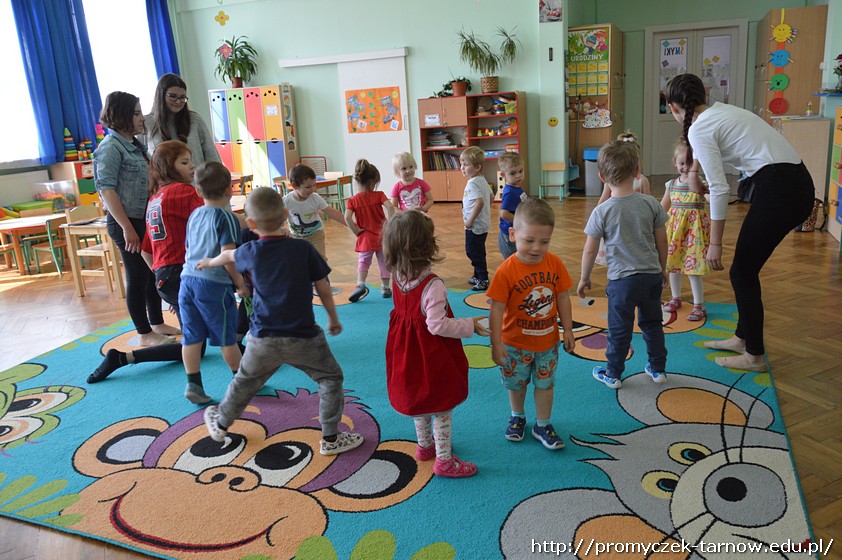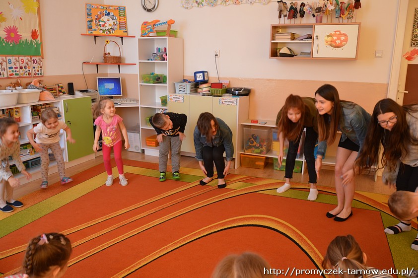 Dla najmłodszych przedszkolaków przygotowały opracowanie bajki „Księżniczka i żaba”, zwracając szczególna uwagę na kwestię dążeń do realizacji marzeń. Kolejno wolontariuszki przeprowadziły z dziećmi tematyczne zabawy ruchowe do wybranych piosenek, a rozbawione Smyki nauczyły panie tańca do jednej ze swoich ulubionych piosenek.
