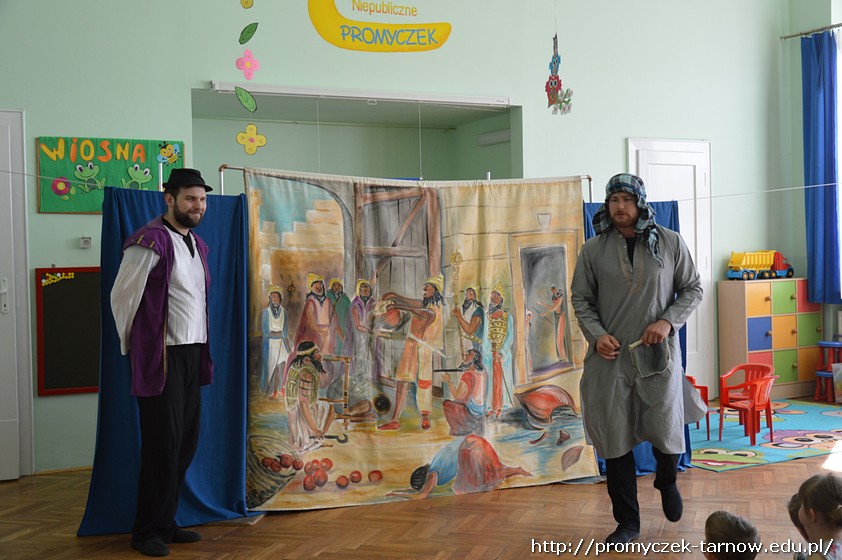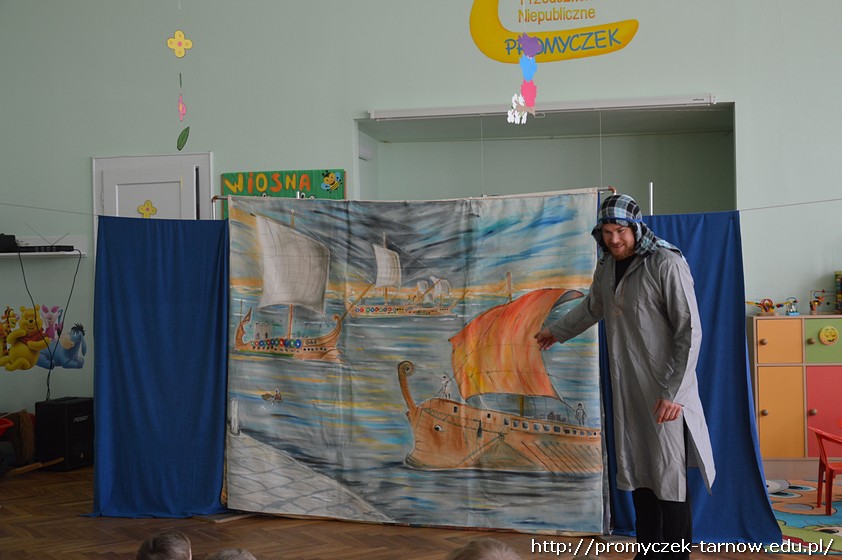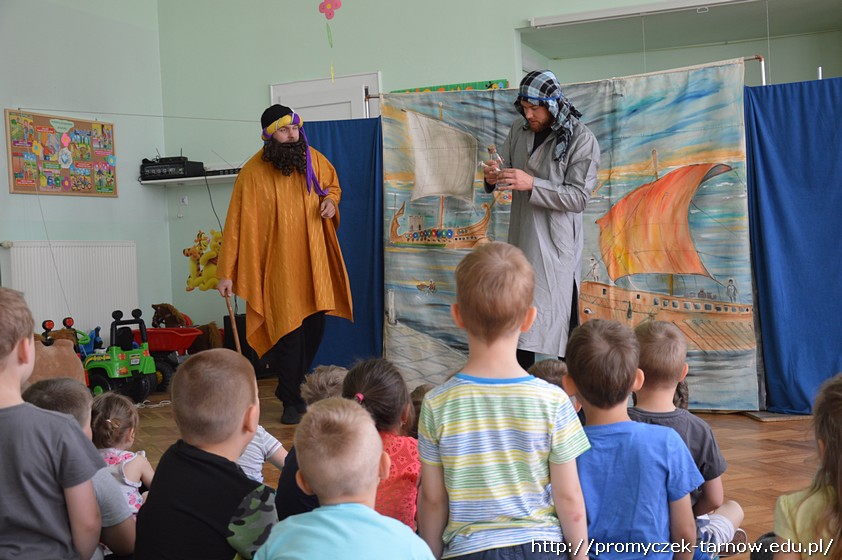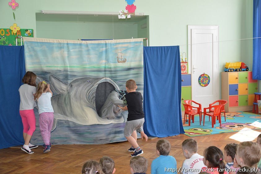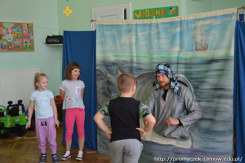 Barwne przedstawienia zapoznało dzieci z losami Jonasza- człowieka uczciwego, ale nie zawsze posłusznego. Bohater przeżył niezwykłe przygody podróżował statkiem, przebywał w brzuchu ryby. Biblijna historia miała na celu nauczyć dzieci, że każdy popełnia błędy, ale ważne jest, aby się do nich przyznać.