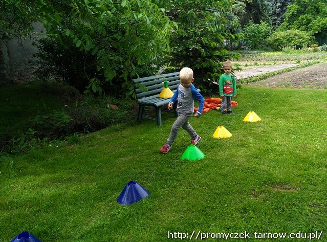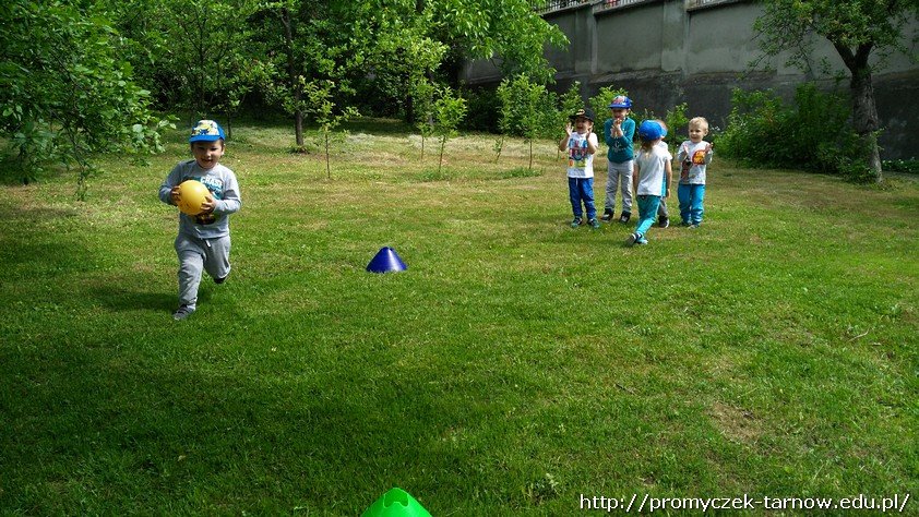Korzystając ostatnio z pięknej wiosennej pogody Smyki udały się do ogrodu celem doskonalenia sprawności ruchowej. Idea zawodów bardzo przypadła dzieciom do gustu, gdyż chętnie podjęły się wykonywania zadań na świeżym powietrzu.