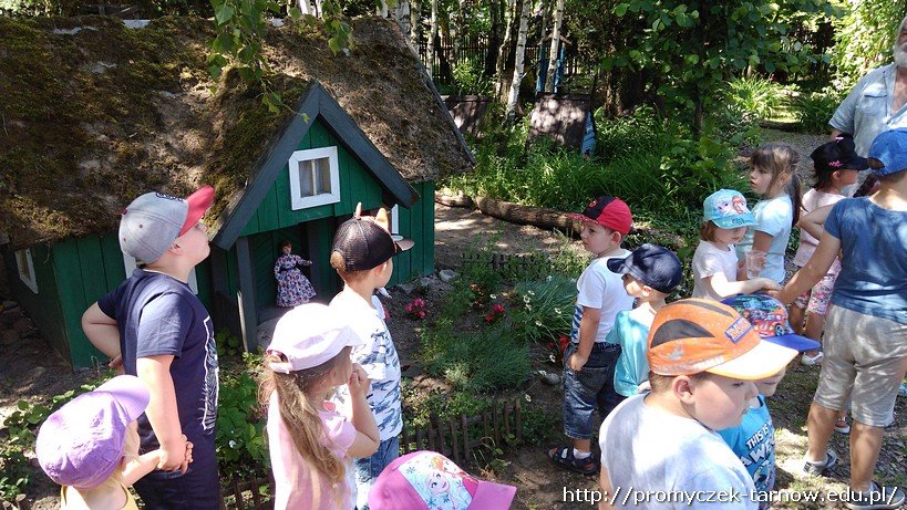 Na koniec wycieczki dzieci odwiedziły jeszcze miniaturową wieś i Bajkowy Ogród w Lipinach, gdzie spotkały prawdziwą czarownicę, która niestety przegoniła te nieco mniej odważniejsze Promyczki.