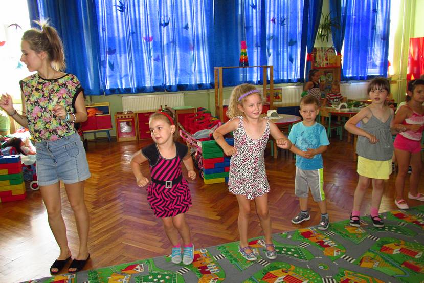 Nasz nowy znajomy przygotował wiele atrakcji - tańce, zabawy ruchowe, konkurs piosenki, a nawet przeciąganie liny! Atmosferę umilały kolorowe bańki, które przez cały czas produkowała specjalna maszynka.