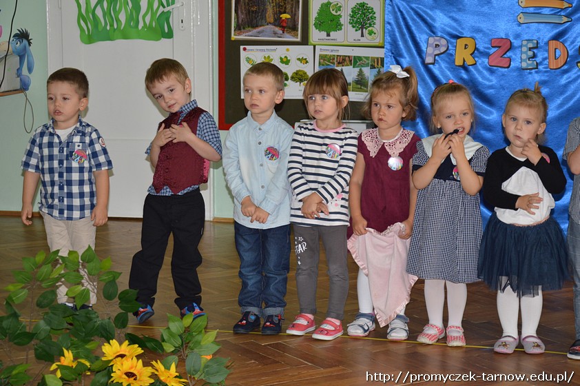 Śpiewanie piosenek, recytacja wierszy i pokaz tańców w grupie przed widownią jest niezwykłym wyzwaniem. Również w tym roku, 23 października, nasze Promyczki dały sobie radę ze wszystkim wspaniale. Smyki pomimo strachu przed swoim pierwszym występem poradziły sobie śpiewająco, Asy udowodniły, że naprawdę zasługują na nazwę swojej grupy, a Zuchy, jako najstarsi w całym przedszkolu, także stanęli na wysokości zadania. Za swoja postawę dzieci zostały oficjalnie przyjęte do grona przedszkolaków przez Panią Dyrektor oraz otrzymały pamiątkowe przypinki.