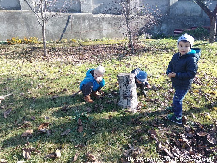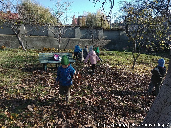 Dzieci mogą skorzystać z ogrodowych sprzętów, biegać, skakać, grać w piłkę, jednak najlepszą zabawą okazuje się być zbieranie jesiennych skarbów oraz zabawy kolorowymi listkami. Cieszymy się, że codziennie możemy obserwować zmieniającą się przyrodę.
