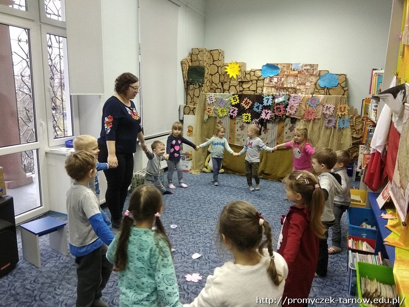 Dzieci przypomniały sobie charakterystyczne oznaki jesieni, wspólnie z Panią starały się przeczytać słowno - obrazkowe opowiadanie, a także brały udział w wielu zabawach ruchowych. Już nie możemy doczekać się kolejnych zajęć.