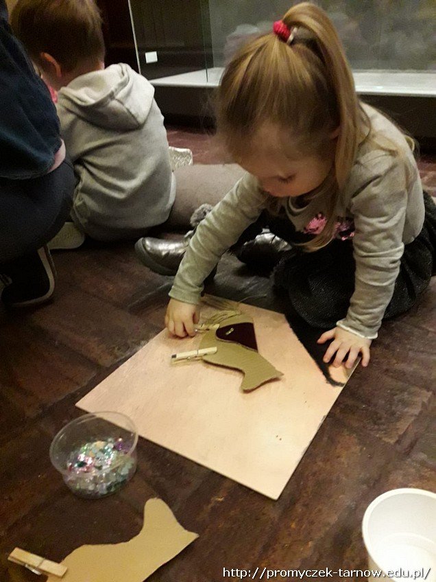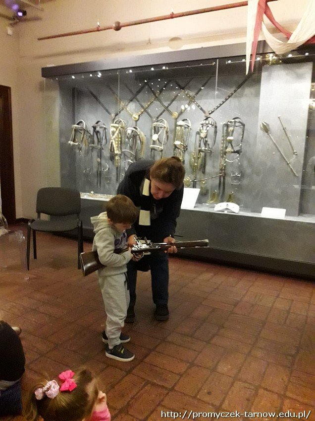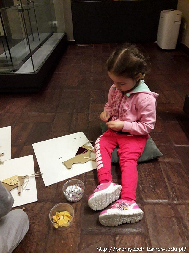 Smyki miały możliwość oglądania końskich siodeł, zbroi oraz broni z XVIII w. Na zakończenie przedszkolaki wykonały samodzielnie konika z tektury i ozdobiły cekinami końskie siodło.