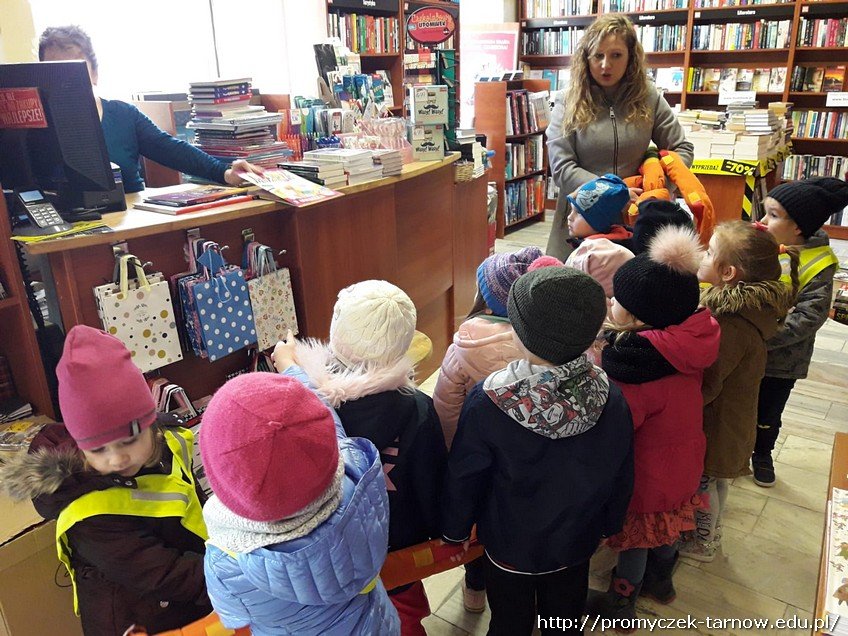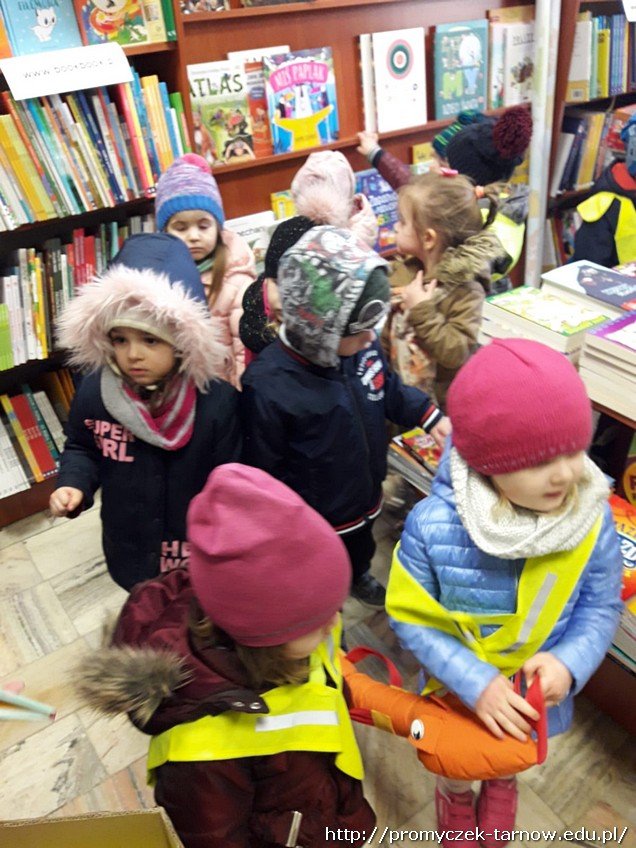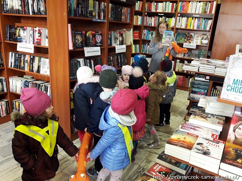 W czwartek 7 marca Smyki wraz ze swoimi paniami wybrały się do księgarni na ul. Wałowej. Przed wejściem do budynku, dzieci zostały poinformowane o właściwym zachowaniu się w środku.