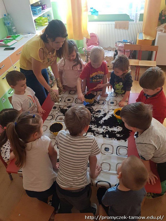W naszej grupie wiosna rozgościła się na dobre. Przedszkolaki wybrały się na zakupy na pobliski bazarek i zakupiły rozsady kwiatów oraz nasiona. Następnie sala przedszkolna zamieniła się w mały ogródek. Dzieci mogły samodzielnie posadzić kwiaty oraz zasiać nasiona.