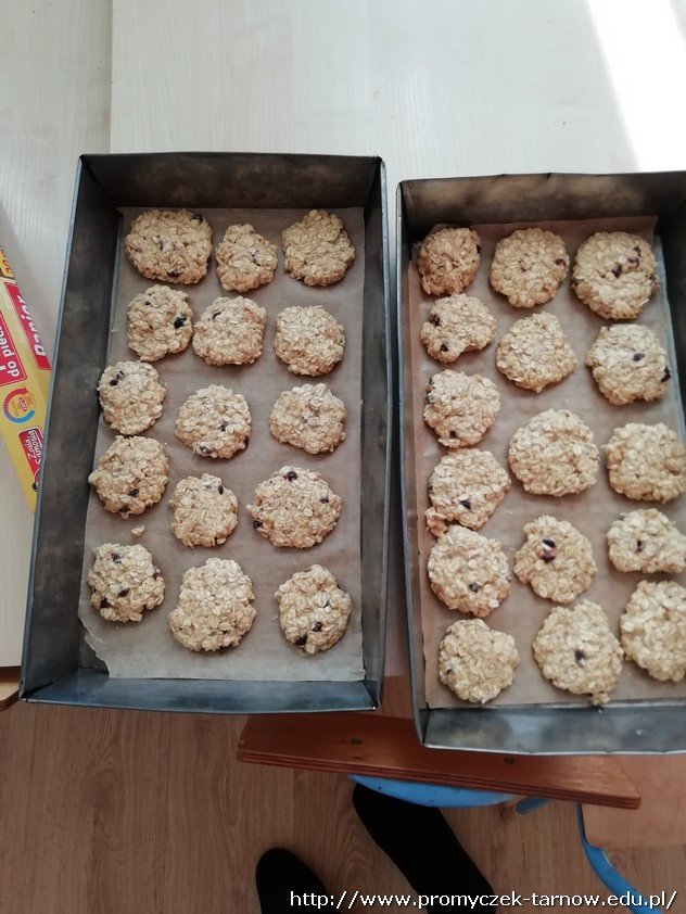 Wybór padł na ciasteczka owsiane z dużą ilością bakalii. Dzieci samodzielnie przygotowały i wymieszały składniki, a także ulepiły ciasteczka. Oczywiście sprzątanie też było na ich głowie. I wiecie co? Poszło im fantastycznie. A ciasteczka okazały się przepyszne!