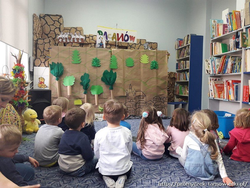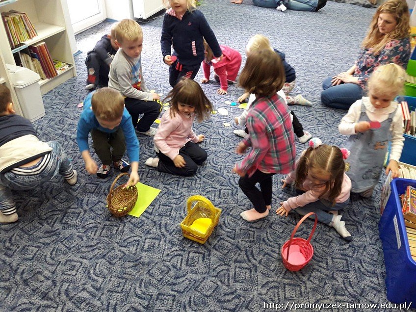 Zadaniem dzieci było, uporządkowanie pisanek do odpowiednich koszyczków. Nie obyło się bez czytania bajek o przygodach zwierząt mieszkających w lesie oraz o Brzydkim Kaczątku. Każdy przedszkolach zatańczył " Łabędzi taniec" a na zakończenie mieli przyjemność zobaczyć teatrzyk o przygodach Koziołka Matołka.