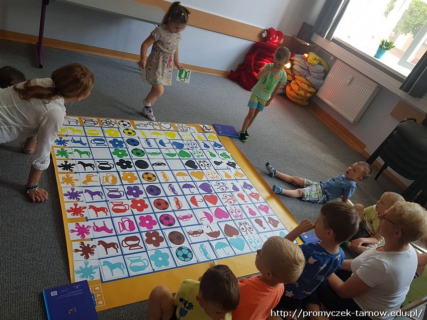 W czerwcu grupa Asów uczestniczyła w kolejnych warsztatach organizowanych przez Bibliotekę Pedagogiczną. Tym razem przedszkolaki zostały zaproszone do zabawy na mapie kodującej. Dzieci w skupieniu poznawały tajniki kodowania.
