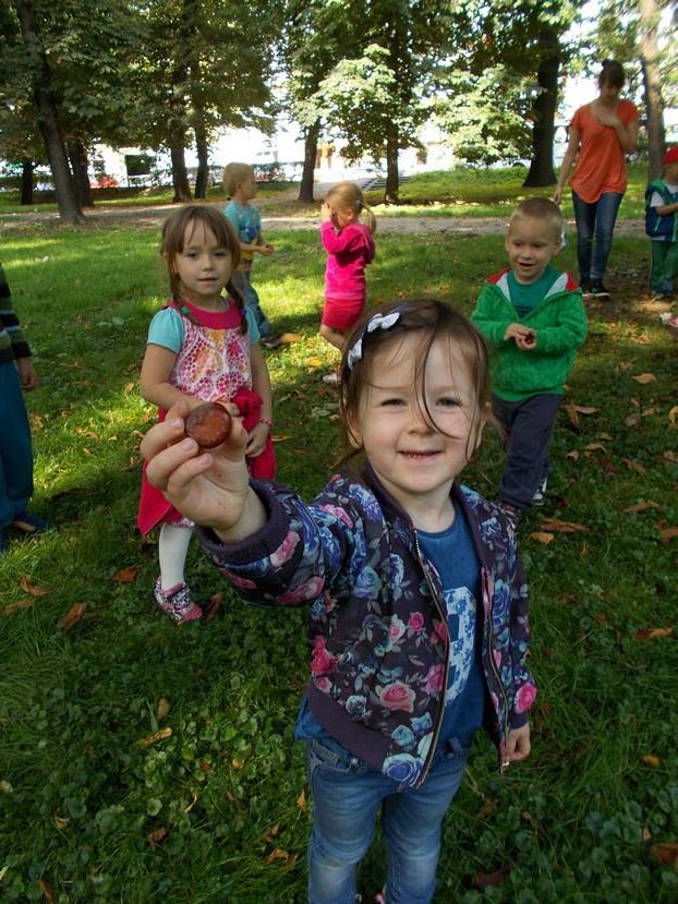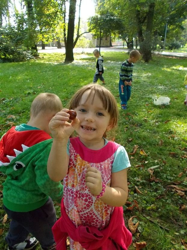 Smyki oraz Asy dobrze wiedziały co zapoczątkuje ich jesienne zbiory. Były to kasztany! Dzieci razem z wychowawczyniami wybrały się do Parku im. Józefa Jakubowskiego, czyli na tzw. planty kolejowe. Czekało tam na nich wiele kasztanowców, które chętnie podzieliły się swoimi owocami. Przedszkolaki zebrały razem dwie pełne reklamówki! Kasztanki czekają teraz w koszykach, jednak długo tam nie poleżą, gdyż dzieci będą je wykorzystywały do zabawy i nauki.