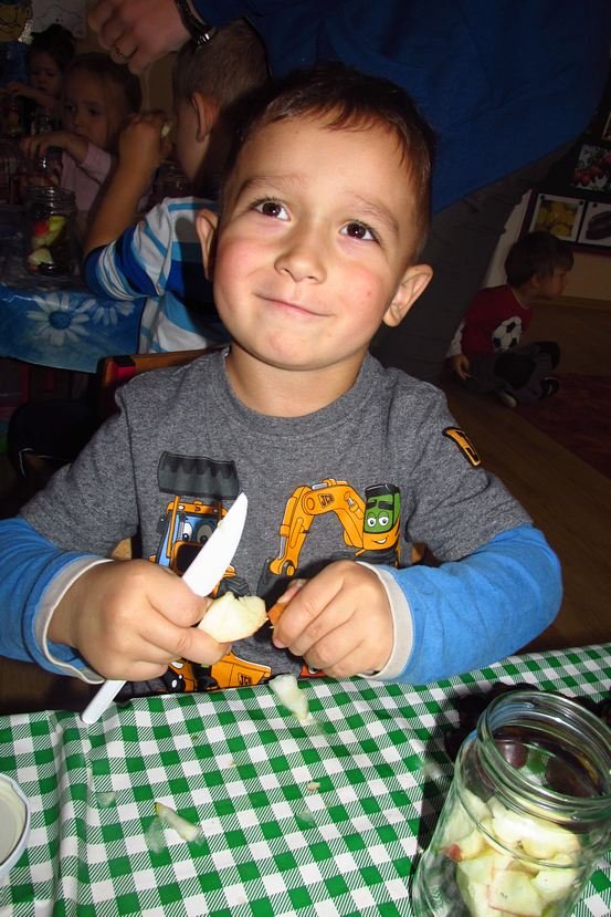 W pierwszym tygodniu października grupa Asy realizowała temat "Jesień w sadzie". W związku z tym pani Paulina przygotowała dzieciom wielką niespodziankę - zaproponowała im przygotowywanie kompotów! Nasze małe Promyczki lubią współdziałanie, dlatego do tak poważnej pracy zaprosiły grupę Smyki.