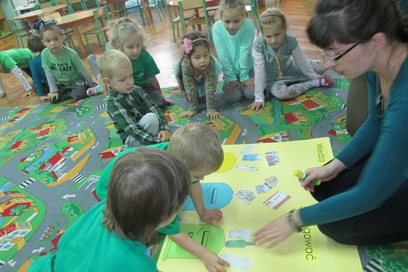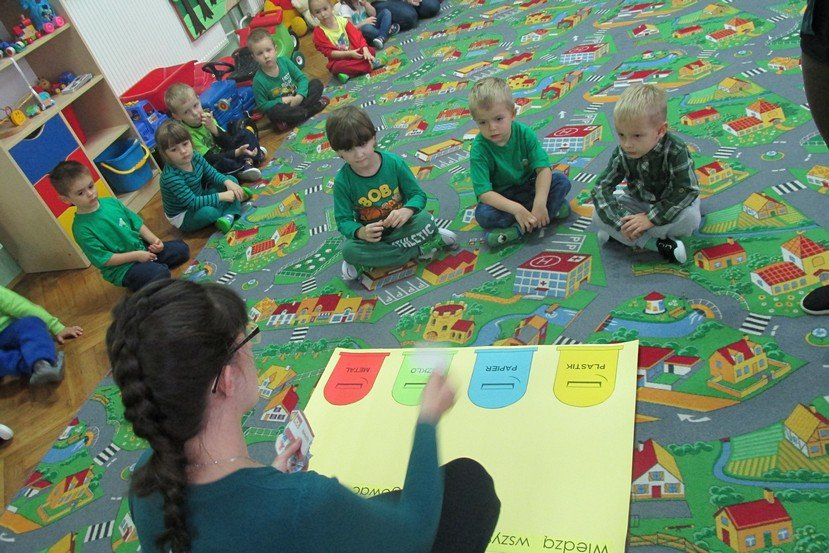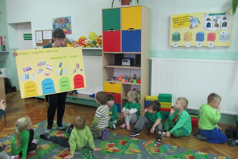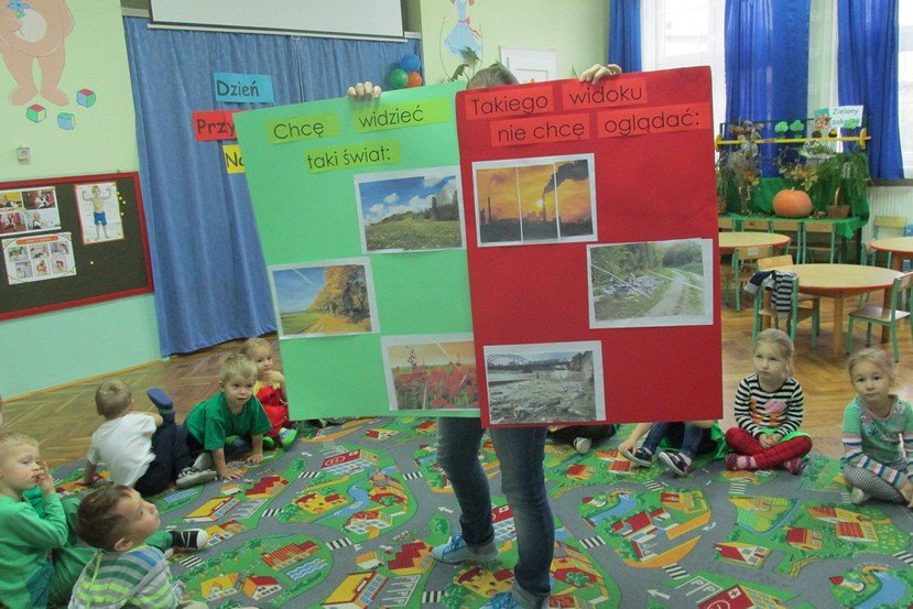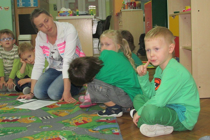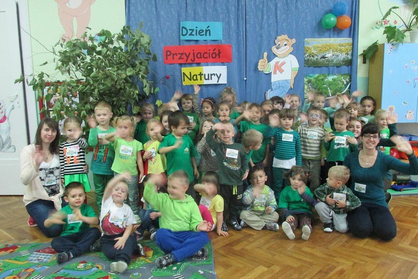 Wszystkie przedszkolaki przybyły do naszej placówki ubrane w zielonym strój (kolor ten został uznany za najpiękniejszy w naturze). Dzięki interesującym konkurencjom dzieci przypomniały sobie jak powinna wyglądać właściwie prowadzona segregacja śmieci, miały szansę ułożyć ekologiczne puzzle, a także odpowiadały na zagadki o przyrodniczej tematyce. Na koniec spotkania każda grupa otrzymała Kodeks Przyjaciela Natury. Dodatkowo wszystkie dzieci dostały w prezencie naklejkę-odznakę świadczącą o tym, że zaliczają się oni do grona przyjaciół Natury.