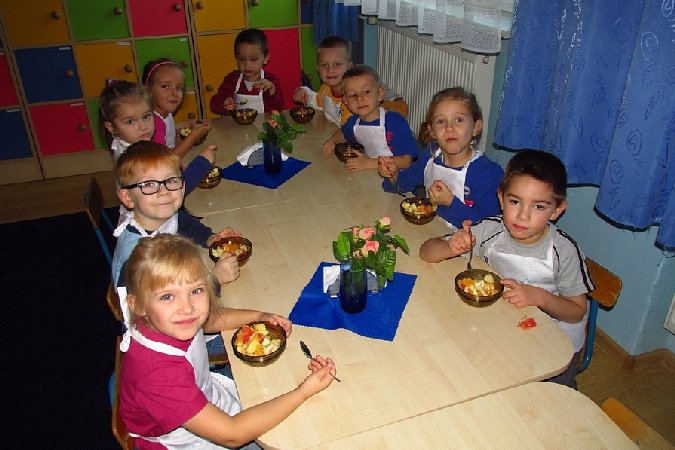 Dzieci przypomniały sobie również o zasadach savoir vivre. Nikt nie będzie już trzymać łokci na stole, ani wkładać do buzi zbyt dużo jedzenia. Kulturalny przedszkolak zawsze zjada posiłki sztućcami, a nie palcami i nie rozmawia podczas spożywania potraw.