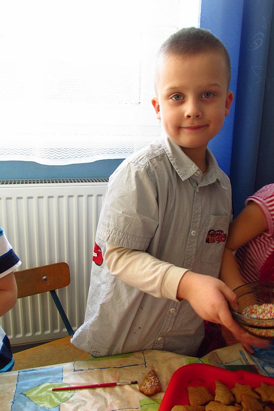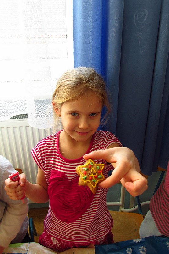 Wszyscy uczestnicy kółka kulinarnego „Mali Smakosze” na spotkaniu, które odbyło się 12 grudnia 2013 roku, mieli szansę na …. dekorowanie pierniczków! Pierniczki zrobiły rano pani Ula i pani Renata, a my mogliśmy na popołudniowych zajęciach zająć się ozdabianiem. Każdy tworzył niepowtarzalne wzory – były uśmiechnięte gwiazdeczki, choinki z kolorowymi łańcuchami, piernikowe ludki ze śmiesznymi guzikami i wiele, wiele innych. Wyobraźnia tego dnia działała u nas na największych obrotach, a smak ciasteczek sprawił, że poczuliśmy atmosferę Świąt.