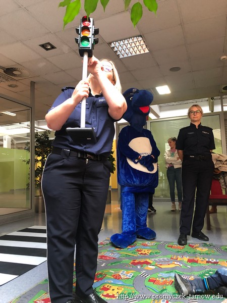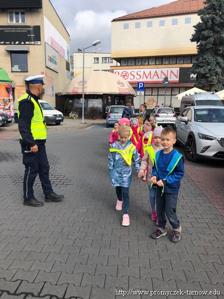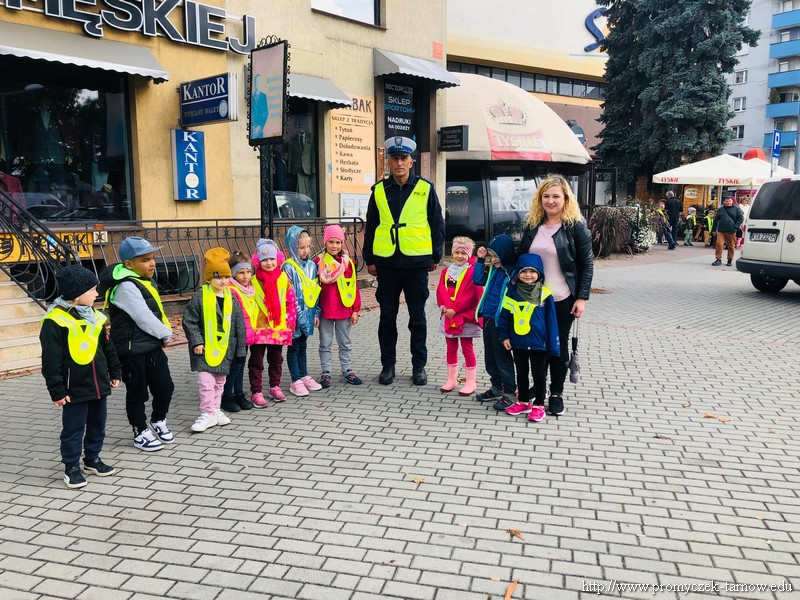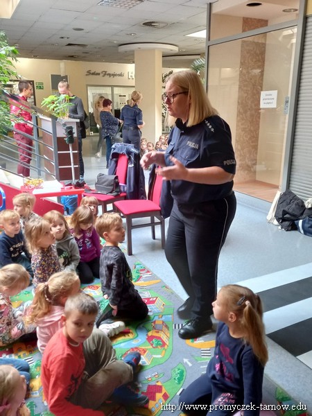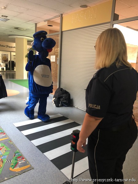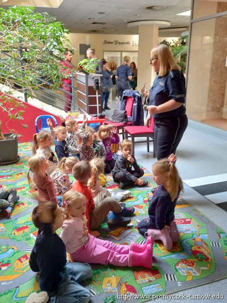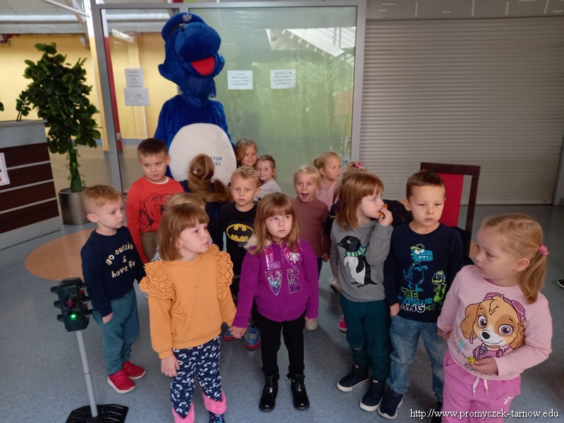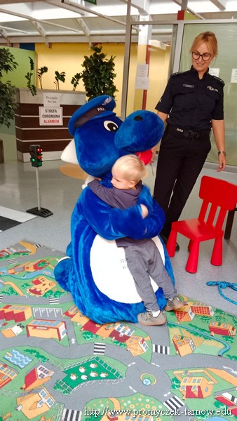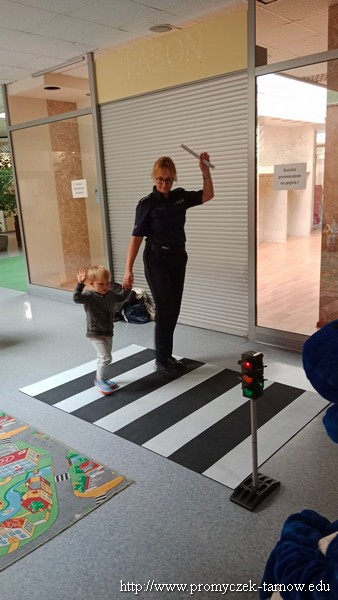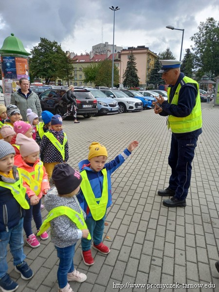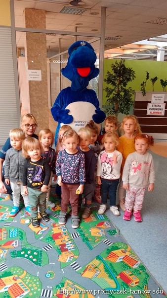 W poniedziałek 19 września wszystkie przedszkolaki z naszego przedszkola udały się na akcję „ Bezpieczny przedszkolak na drodze” zorganizowany przez Tarnowską Policję oraz Centrum Handlowe „ Świt” Dzieci uczestniczyły w praktycznych warsztatach, w których policjanci ruchu drogowego oraz prewencji z pomocą Inspektora Wawelka pokazywali prawidłowe zachowania na skrzyżowaniach, przejściach dla pieszych, tym najmłodszym, niechronionym uczestnikom ruchu drogowego. Była krótka pogadanka z policjantkami wydziału prewencji, a następnie wdrożenie zdobytych umiejętności w praktyce. Policjanci ruchu drogowego pokazali przedszkolakom, w jaki sposób należy przechodzić przez oznakowane przejście dla pieszych. Bezkonkurencyjne okazało się wejście przez przedszkolaki do radiowozu i zobaczenie środka pojazdu. Dodatkowo wszystkie dzieci, które w tym zajęciach uczestniczyły otrzymały elementy odblaskowe, które na zbliżającą się jesienną porę roku będą doskonałym wyposażeniem ich ubioru. Była to bardzo ważna lekcja bezpieczeństwa, którą mamy nadzieję, że dzieci na długo zapamiętają.