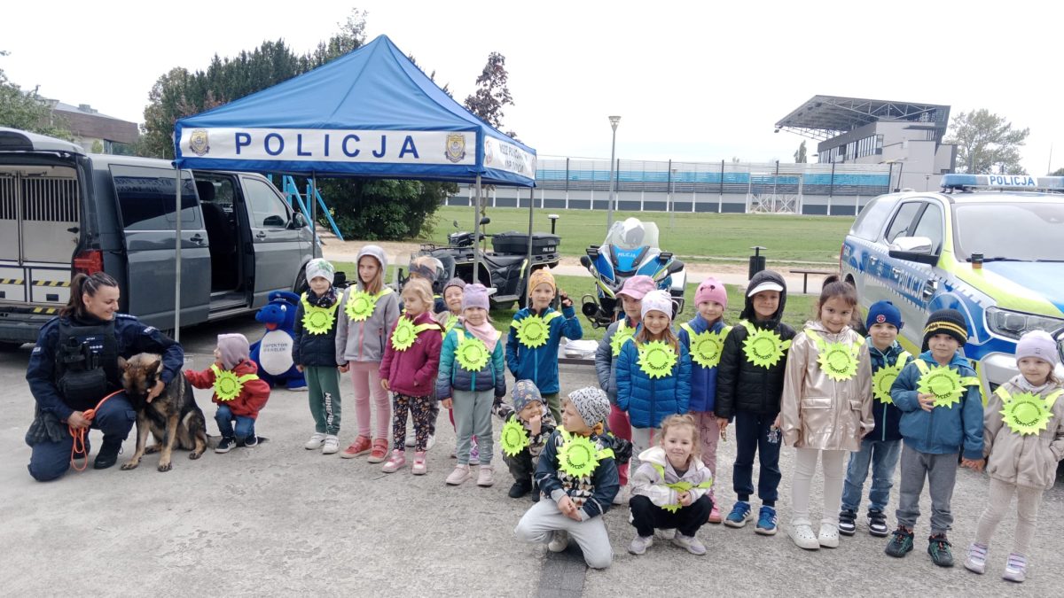 26 września najstarsza grupa udała się na Konferencję „Bezpieczne Dzieci” w Centrum Sztuki Mościce. Na miejscu na dzieci czekało mnóstwo atrakcji – animacje, zabawy ruchowe, zabawy z chustą animacyjną oraz oczywiście spotkanie z psami policyjnymi i funkcjonariuszami policji, którzy opowiedzieli o bezpieczeństwie na drogach. Na koniec dzieciaki zwiedziły pobliski plac zabaw – a tam przyszli do nas goście i rozdali kolorowe balony.