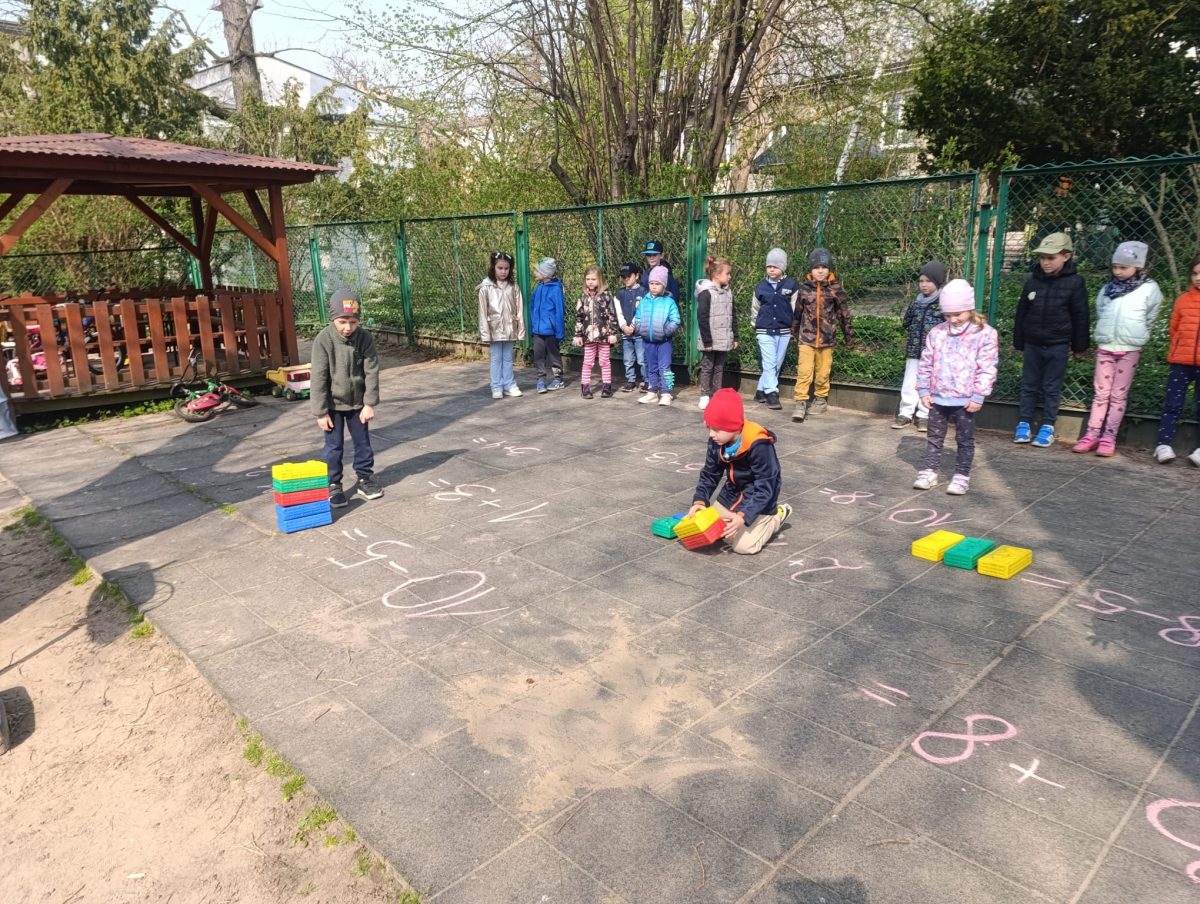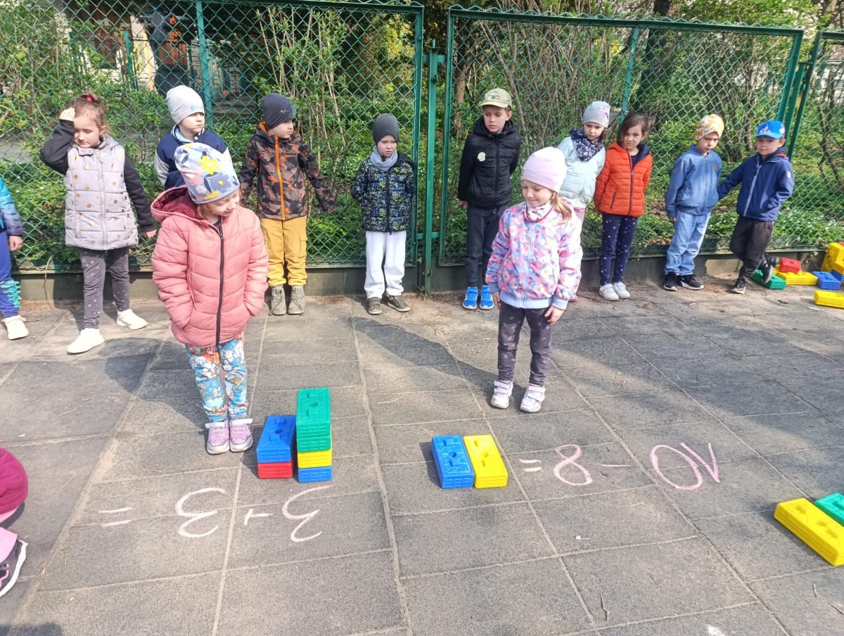 Zuchy wykonały kolejne zadanie z matematyką w ruchu. Tym razem za zadanie miały wykonać działania matematyczne i przynieś tyle klocków żeby odpowiadał wynikowi. Wszystkie promyczki miały świetną zabawę w połączeniu z ruchem i świeżym powietrzem 🙂