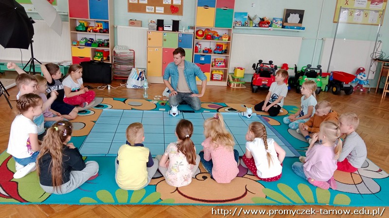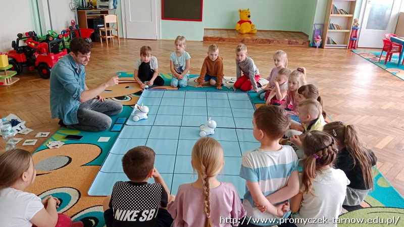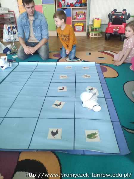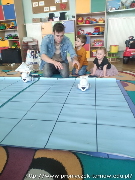 24 maja w naszym przedszkolu po raz kolejny odbyły się zajęcia z robotyki. Dzieci za pomocą robotów, którym nadali imię Reksio i Gwiazdka kodowali ich ruchy, miejsce położenia oraz kolor ich oczu i uszu. Była to świetna lekcja dla Zuchów, Asów i Smyków. Przedszkolaki powtórzyły sobie kolory, nazwy zwierząt oraz ich odgłosy. Najciekawszy dla dzieci okazał się wyścig dwóch zaprogramowanych robotów. Dziękujemy za bardzo pouczający czas spędzony z naszymi dziećmi.