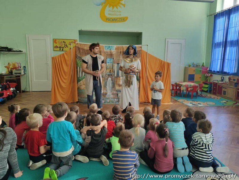 Dnia 10 października nasze przedszkole odwiedził teatrzyk Eden,który zaprezentował przedszkolakom spektakl pod tytułem "Ukryte bogactwo". Podczas przedstawienia poznaliśmy świat małego chłopca, który musiał zmierzyć się z zazdrością starszego brata i niełatwą służbą w pałacu Faraona. "Ukryte bogactwo" to piękna opowieść o tym, co tak naprawde jest najważniejsze w życiu. Nasze przedszkolaki przekonały się, że nie jest to złota szata, czy inne skarby, lecz miłość i umiejętność przebaczania. Największe bogactwo ukryte jest głęboko w naszych sercach i każdy może je tam odnaleźć.