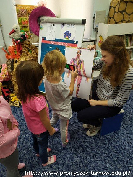 We wtorek Asy brały udział w zajęciach czytelniczych w Bibliotece dla Dzieci i Młodzieży. Tematem zajęć było „Moje ciało”. Za pomocą zabaw oraz z wykorzystaniem książek i encyklopedii Asy aktywnie poszerzały swoje słownictwo dotyczące ciała i wyglądu. Dzieci ćwiczyły równowagę i szybkość. Miały też okazję zobaczyć budowę ciała człowieka "od środka", za pomocą specjalnych okularów, co spodobało im się najbardziej.