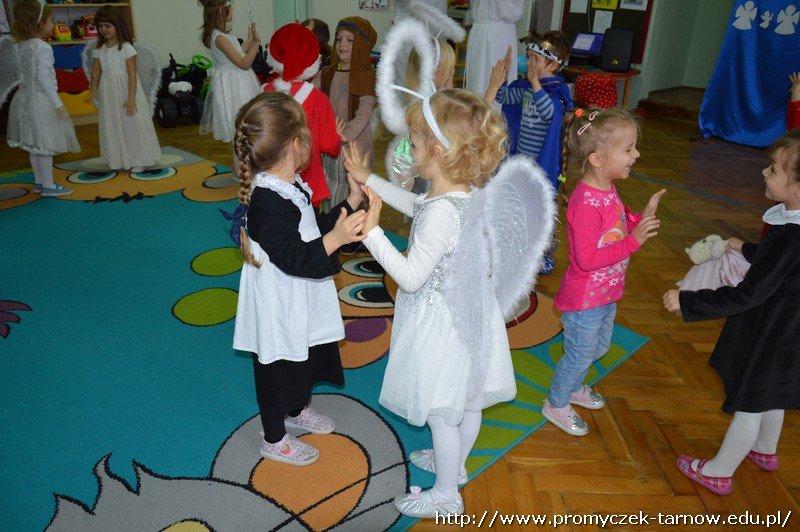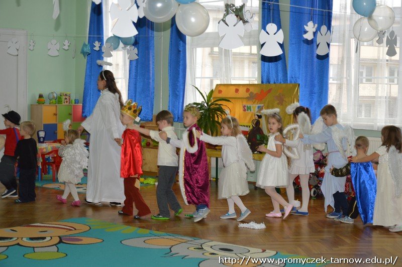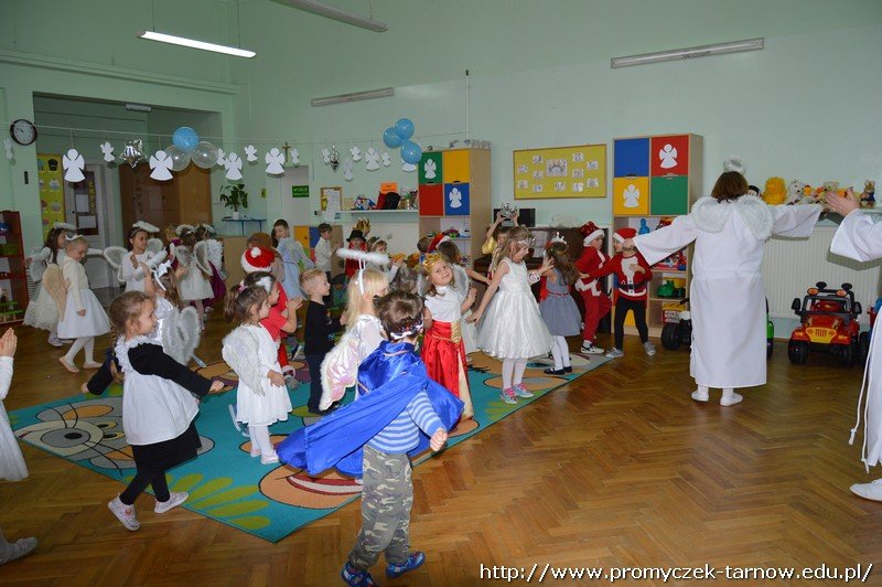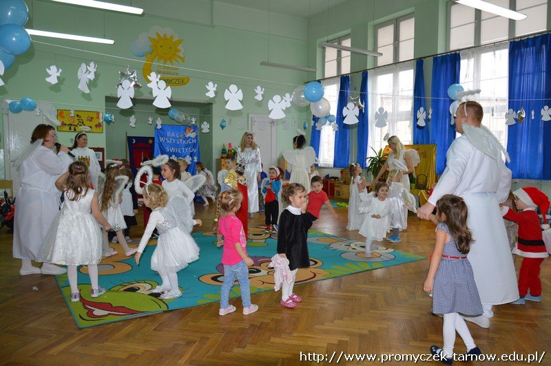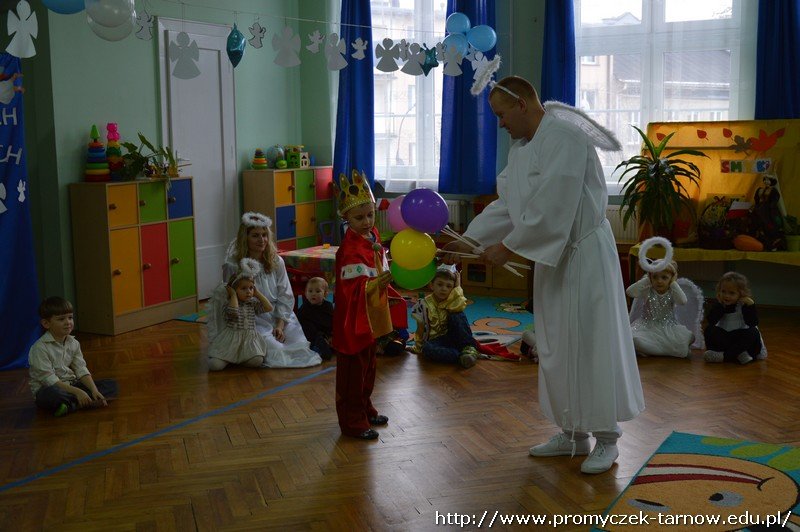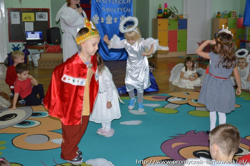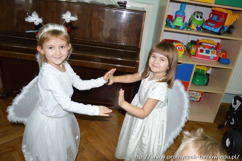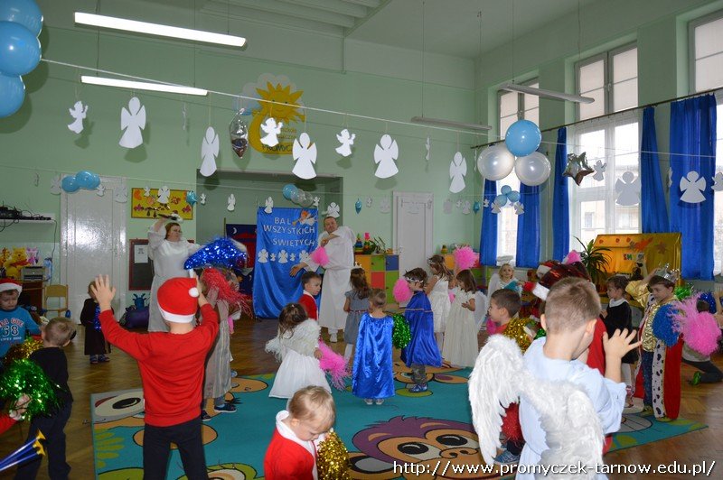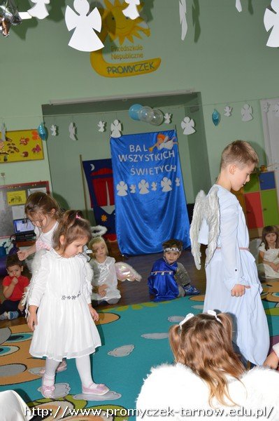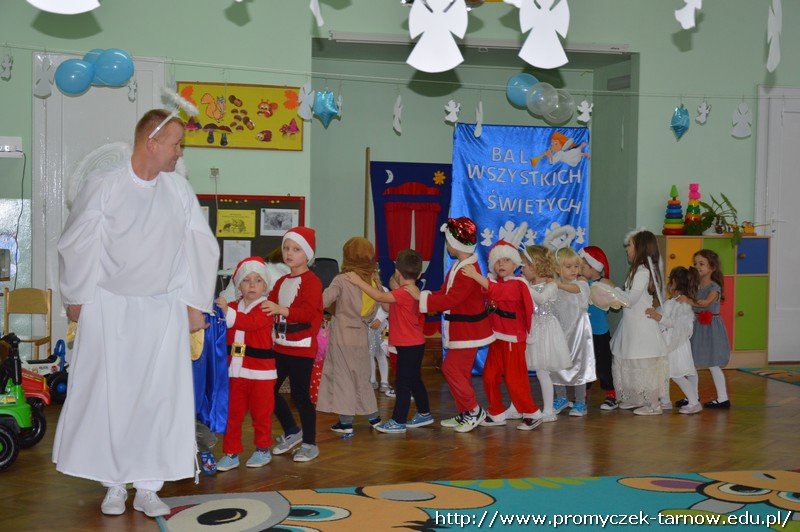 W miesiącu listopadzie W naszym przedszkolu po raz pierwszy odbył się "Bal Wszystkich Świetych". Wszystkie dzieci przebrały się za świętych lub aniołki. Bardzo dziękujemy wszystkim rodzicom za przygotowanie strojów. Na balu nie zabrakło zadań od Aniołka Felka. Radość na twarzach dzieci nie znikała. Dzieic na pewno zapamiętają, że "taki duży, taki mały może świętym być.."