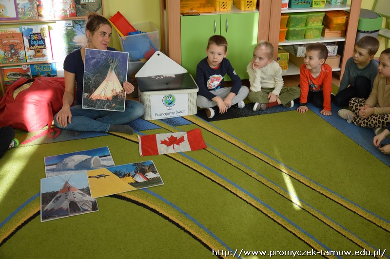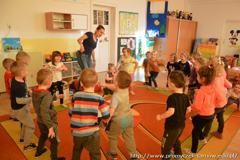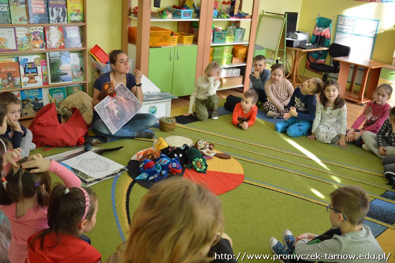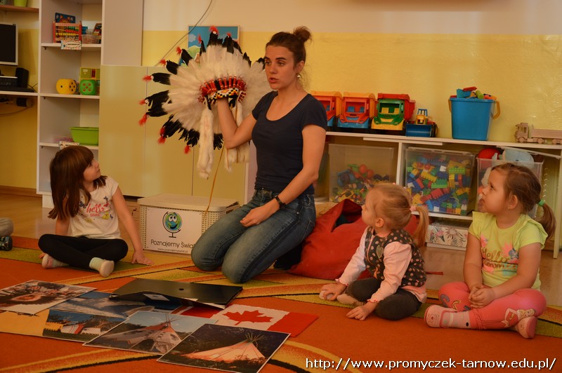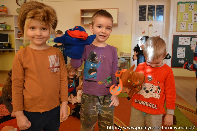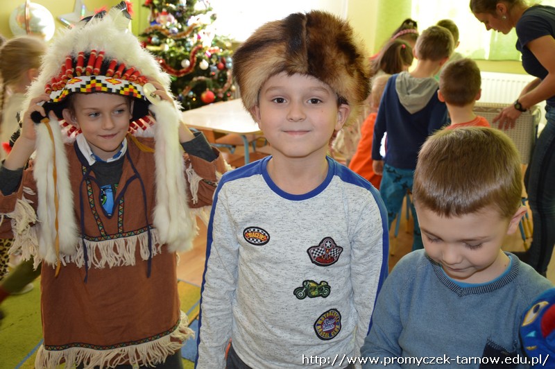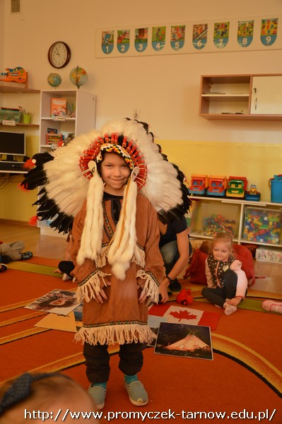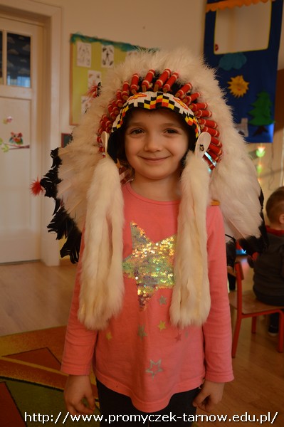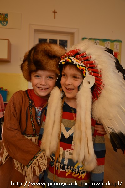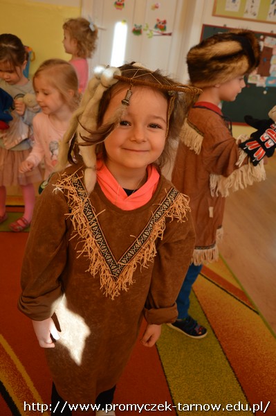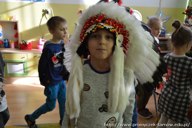 15 stycznia Promyczki miały przyjemność uczestniczyć w warsztatach podróżniczych „W indiańskiej wiosce”. Przedszkolaki podczas warsztatów dowiedziały się jak nazywają się i wyglądają tradycyjne indiańskie domy, jak żyli i podróżowali Indianie, a także kim jest wódz wioski i w jaki sposób należy się z nim przywitać. Miały też okazję pobawić się indiańskimi pacynkami przedstawiającymi ważne dla Indian zwierzęta - totemy. Dzieci mogły się przebrać w stroje indiańskie i zagrać na indiańskich instrumentach. Było bardzo wesoło i kolorowo!