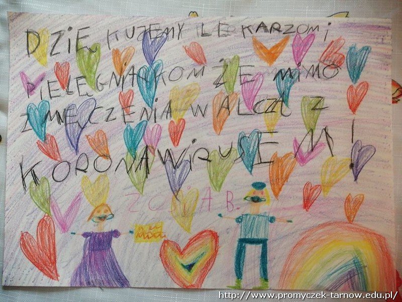 W ramach akcji "Serce dla Medyka" dzieci z Promyczka przygotowały wyjątkowe prace z życzeniami i podziękowaniami. Dzieci w ten sposób chciały podziękować lekarzom, pielęgniarkom, ratownikom, a także sprzedawcom, wszystkim tym, na których w tym trudnym czasie możemy liczyć. W wykonanie podziękowań Promyczki włożyły wiele serca.