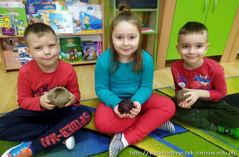 Kolejne warzywne święto u Zuchów, tym razem obchodziliśmy Dzień Buraka. Dzień ten pełen był zabaw z ciemnoczerwonym warzywem w roli głównej. Zuchy dowiedziały się, jakie witaminy zawierają buraki, oraz jakie potrawy można z buraczków przyrządzić. Zuchy zajadały pyszną sałatkę buraczkową oraz degustowały sok z kiszonych buraków. O dziwo nikt nie grymasił, wszystkim bardzo smakowało! Wiele radości sprawiło Zuchom także malowanie... a czym?