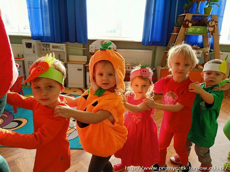 Witaminki dla chłopczyka i dziewczynki..." Dnia 26 listopada w naszym przedszkolu odbył się bal nieco inny niż wszystkie. Miał on na celu przybliżyć dzieciom, jak ważne w naszej diecie są owoce i warzywa. Były tańce, zagadki tematyczne. Dzieci w strojach owocowo-warzywnych prezentowały się znakomicie. Nie zabrakło poczęstunku, oczywiście składającego się z owoców, warzyw i bakalii.