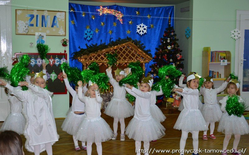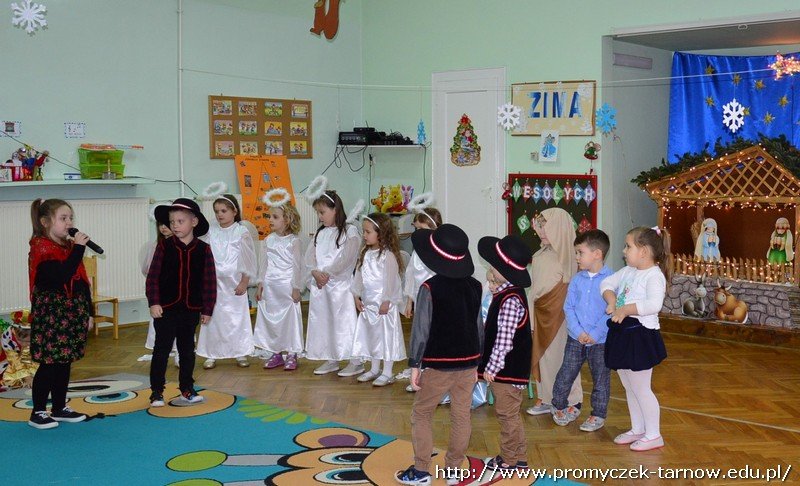 Boże Narodzenie to najpiękniejszy okres w całym roku. Nie tylko dzieci ale również dorośli z niecierpliwością czekają na ten magiczny czas. Te piękne święta celebrujemy nie tylko w naszych domach ale również w przedszkolu. W piątek 18. 12. 2020r. już od rana w całym przedszkolu panowała radosna i świąteczna atmosfera. Dzieci bardzo przejęte przybyły do przedszkola, gdzie miały odbyć się jasełka oraz przedszkolna Wigilia. Najpierw zaprezentowała się najmłodsza grupa w naszym przedszkolu pięknie recytując wiersze oraz śpiewając kolędy, grupa Asów zaprezentowała przedstawienie pt. "Gwiazdkowa szkoła", natomiast grupa Zuchów przedstawiła tradycyjne jasełka, przypominając nam wszystkim historię Bożego Narodzenia. Po występach odbyła się uroczysta Wigilia, dzieci składały sobie życzenia oraz śpiewały kolędy. Tegoroczna Wigilia zapewne zapadnie nam wszystkim w pamięć, a przeżyte chwile pomogą utrwalić wszystkim przedszkolakom świąteczne tradycje oraz przypomnieć, że Boże Narodzenie to czas radości oraz wzajemnej życzliwości.