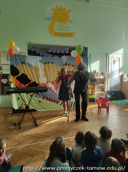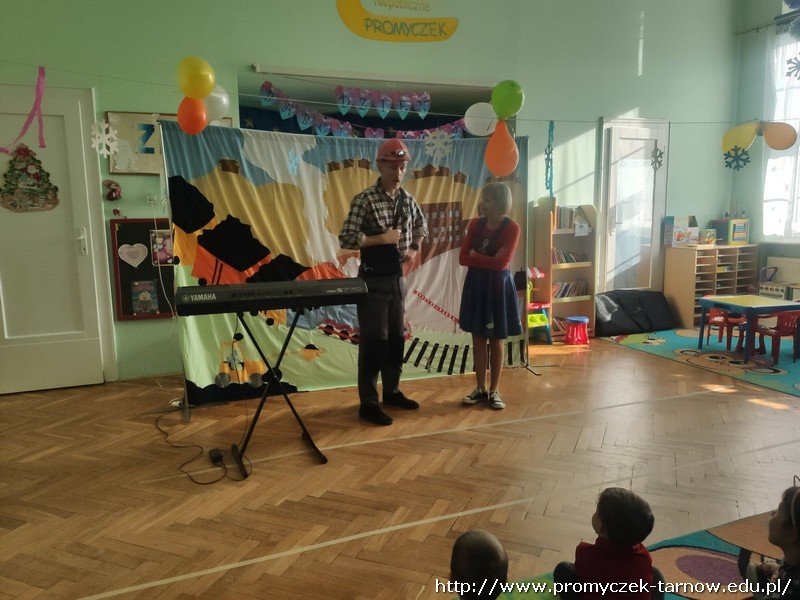 Dnia 29 stycznia gościliśmy w naszym przedszkolu Bemola i Wiolinkę, którzy zaprezentowali nam audycję muzyczną pt. "Legendy Górnicze", dzieci podczas audycji poznały legendy związane z kopalnią węgla a także bardzo aktywnie uczestniczyły w zabawach muzycznych proponowanych przez Bemola i Wiolinkę nauczyły się również tańca "trojaka".
