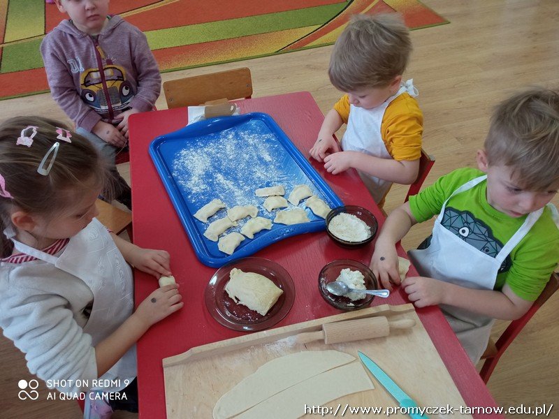 Dnia 1 marca obchodziliśmy Dzień Pieroga, z tej okazji nasze przedszkolaki wraz ze swoimi paniami przygotowały przepyszne słodkie pierogi z serem. Nasze Promyczki miały okazję samodzielnie przygotować ciasto, wałkować oraz kleić pierogi, które później ze smakiem zostały zjedzone na obiad.