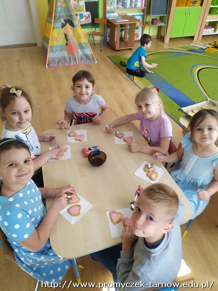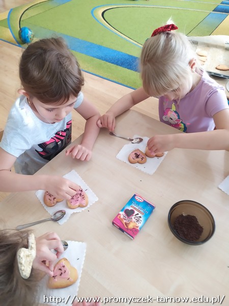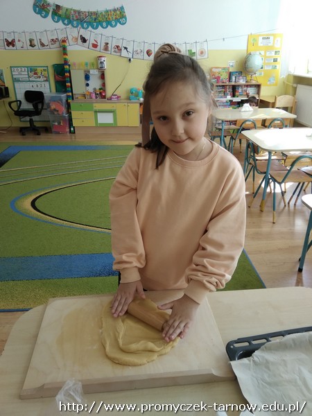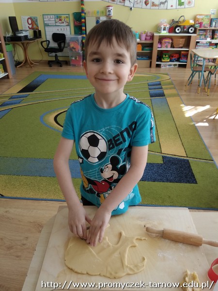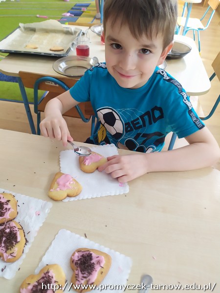 Z okazji Dnia Mamy oprócz laurek z życzeniami grupa Zuchów postanowiła przygotować dla swoich mam słodki poczęstunek. Dzieci postanowiły upiec kruche, maślane ciasteczka. Najpierw starszaki odmierzyły wszystkie składniki zgodnie z przepisem oraz zagniotły ciasto. Z rozwałkowanego ciasta dzieci wykrawały serduszka, które po upieczeniu ozdobiły lukrem oraz czekoladową posypką. Mamy nadzieję, że wszystkim mamom ciasteczka przypadły do gustu.